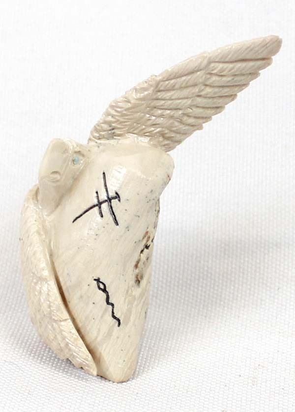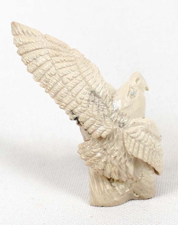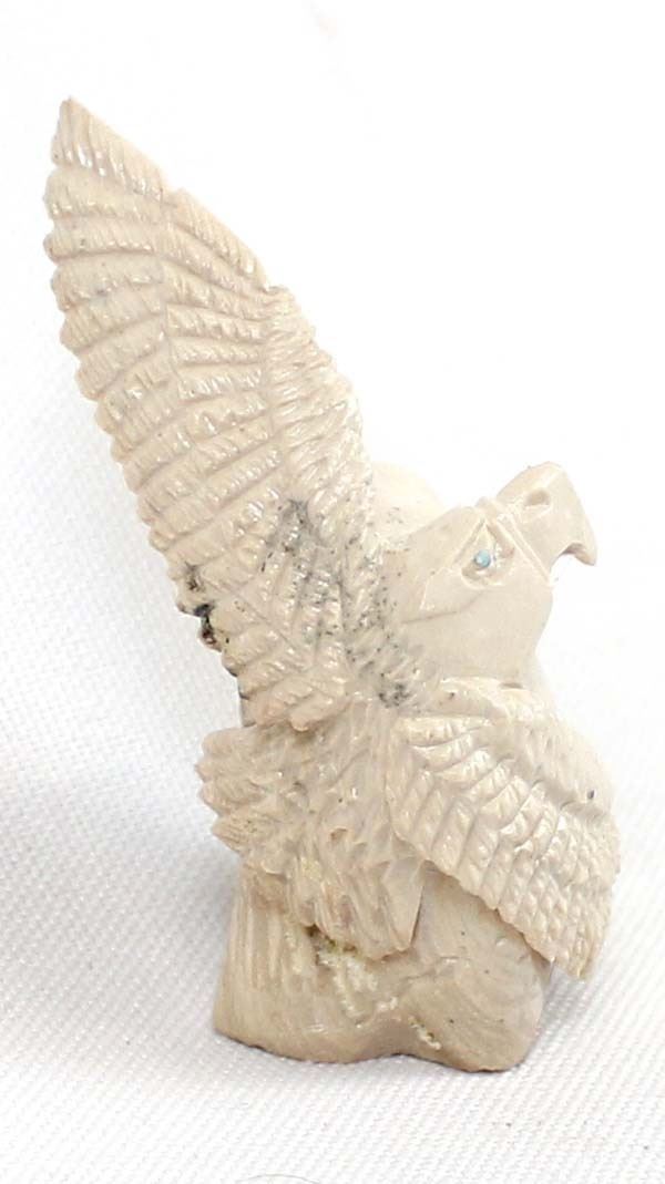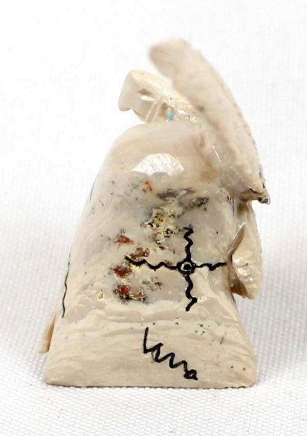 Native American Zuni Eagle Fetish by Eric Martinez, measures 2'' x 1.75'' and is signed on the bottom, turquoise eyes