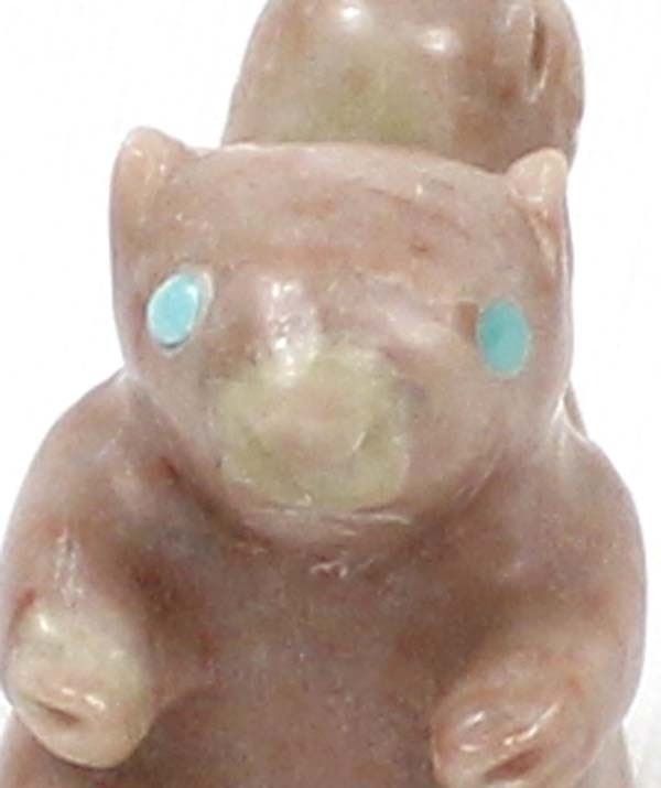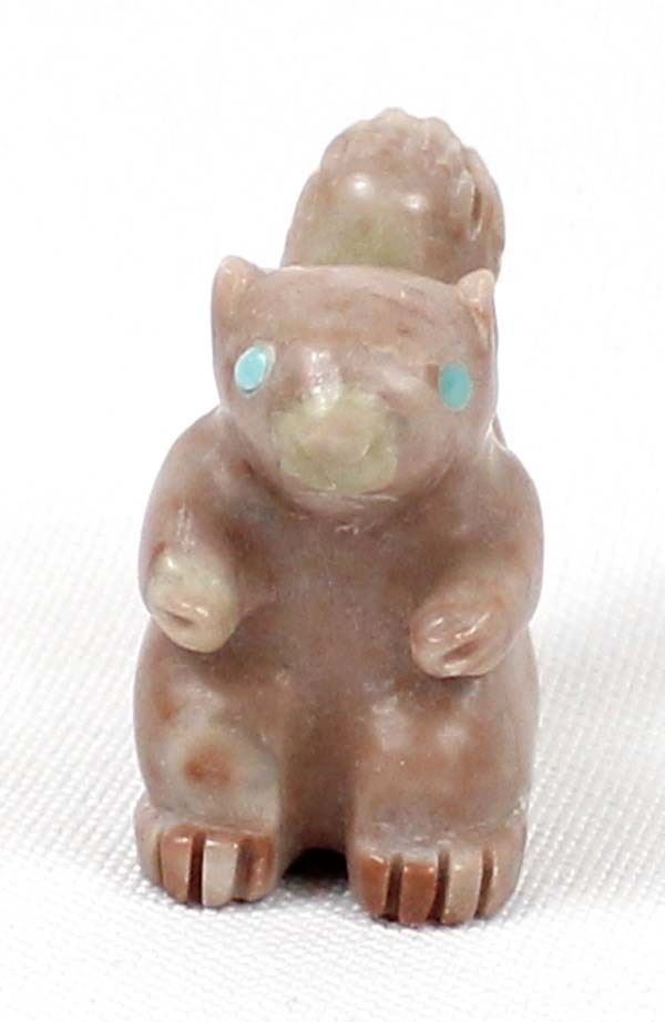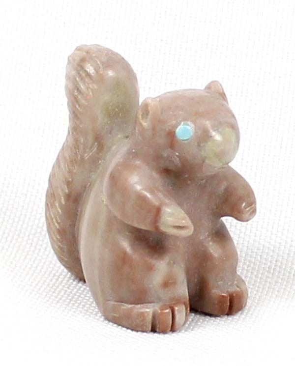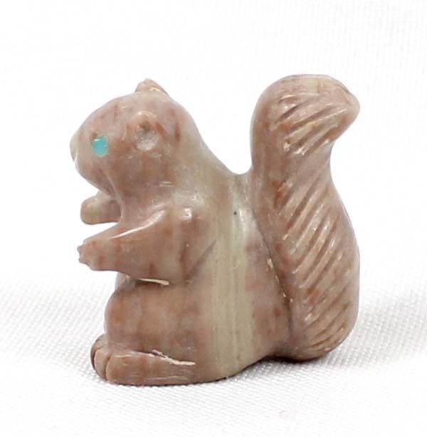 Native American Zuni Dolomite Squirrel Fetish by Fabian Cheama, measures 1.25'' x 1.25'' and is signed on the bottom, turquoise eyes