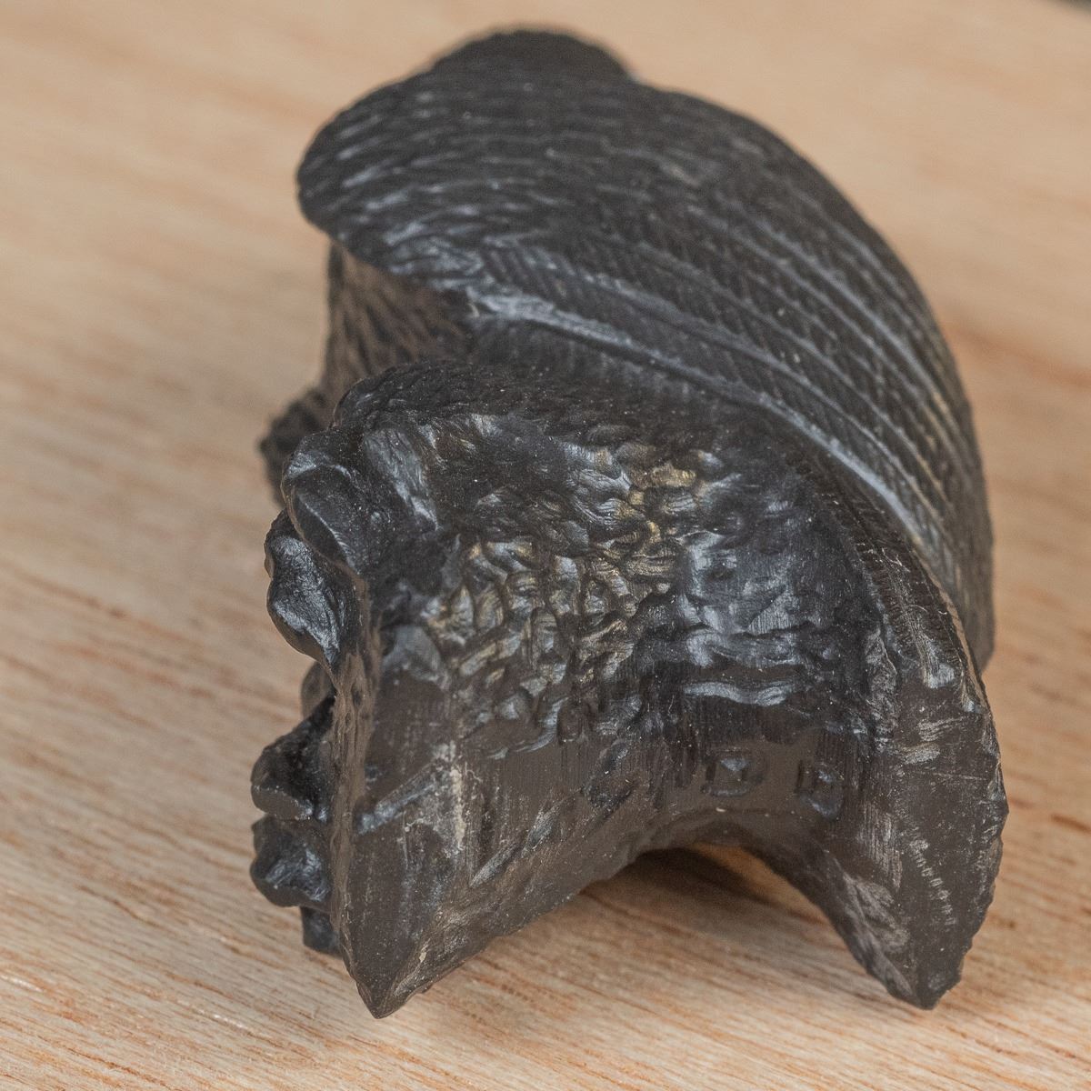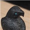 Native American Zuni Black Marble Eagle Fetish by Travis Lasiloo, measures 1'' x 1.25'' x 2.25'' and is signed on the bottom, turquoise eyes, well executed, fabulous detail