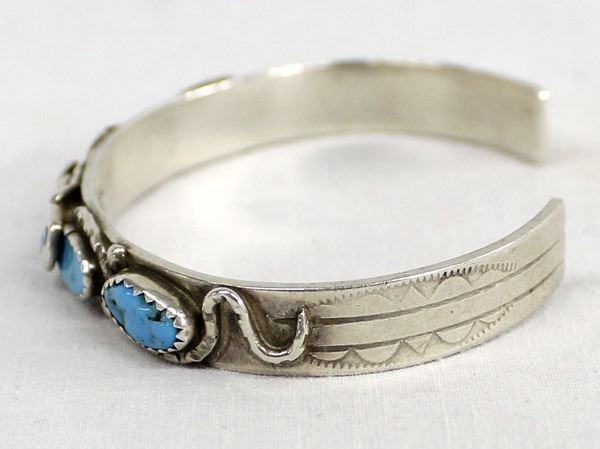 Vintage Native American Zuni Effie Calavaza Snake Bracelet, inside measures 6.75'' x 3/8''W, hallmarked and stamped sterling, FYI: ''Effie Calavaza is a Zuni Silversmith whose work has captured the hearts of many collectors. She was born in 1928 and started making jewelry in the 1950's. A Zuni artist from New Mexico, she is one of the most collected and most beloved Native American artists.''