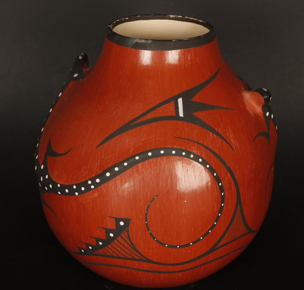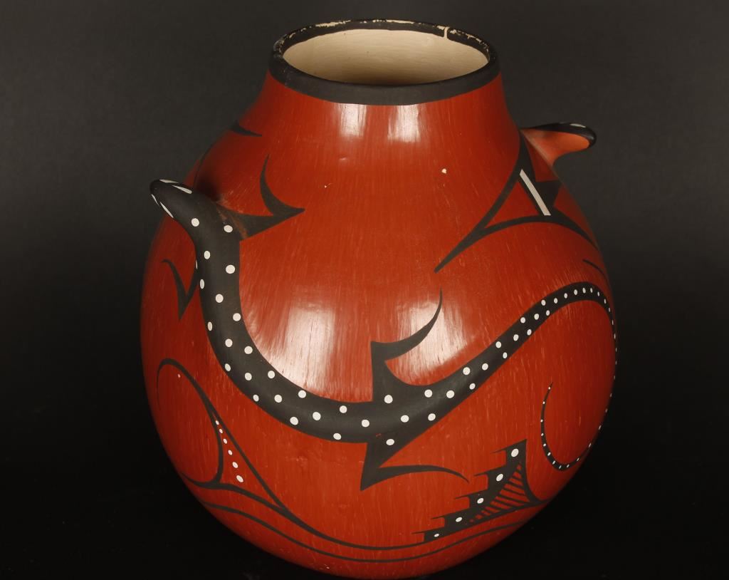 Y. Nashboo NBT signed on base with geometric pattern and lizard effigies. Retail $750
