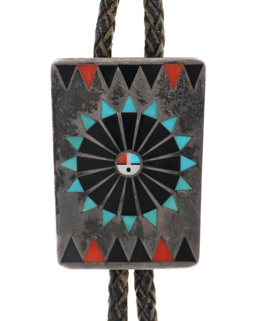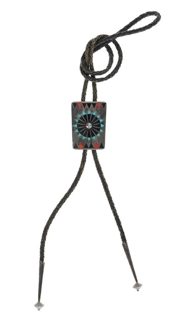 Zuni F.L. Natachu, Silver Mosaic Bolo Tie
