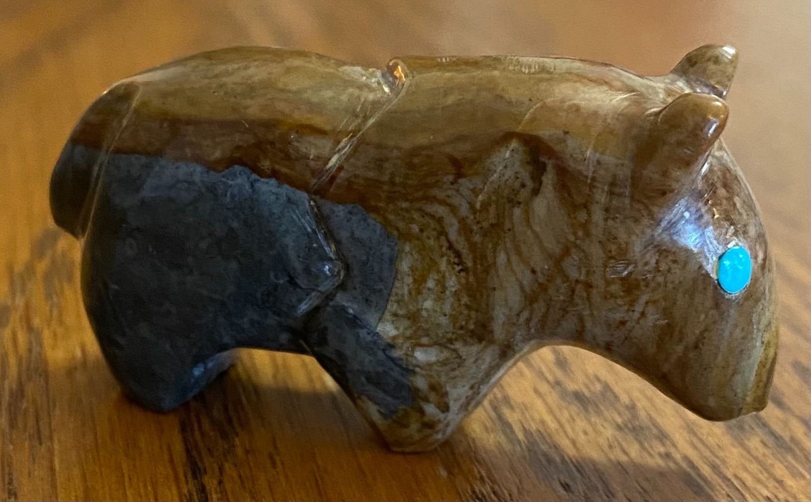 I guess that this is Artist Interruption. Out of a Collection, I first thought a Horse then a Dog, I guess that you will have to tell me. Carries a Hallmark L.C. as well as an AS and Zuni. See pictures.