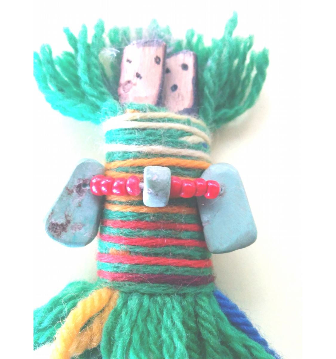 Zuni Fetish, C. 1960's. Made of wood, yarn and turquoise and glass beads. Measures approx. 6" x 2" X 2". Zuni, New Mexico. Double-Fetish figure with three nice turquoise stones, and beads. Could possibly symbolize twins. Condition: Very good condition. Shipping: $14.50.