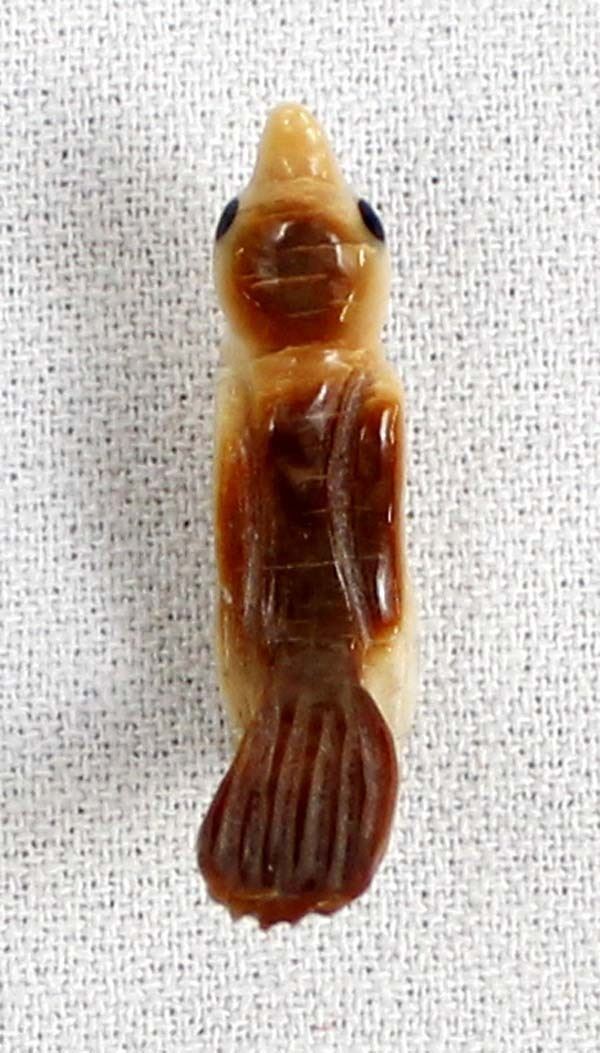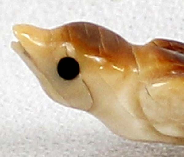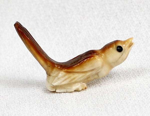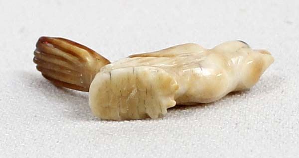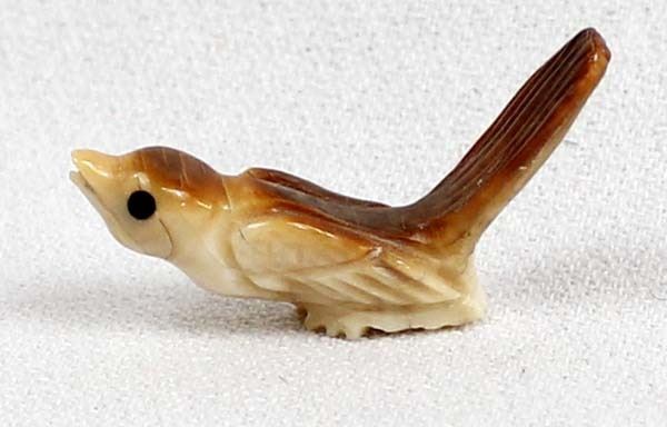 Native American Zuni Fossilized Ivory Bird Fetish by Ricky Laahty, measures 1.25''L x .75''H x .25''W and is signed on the bottom