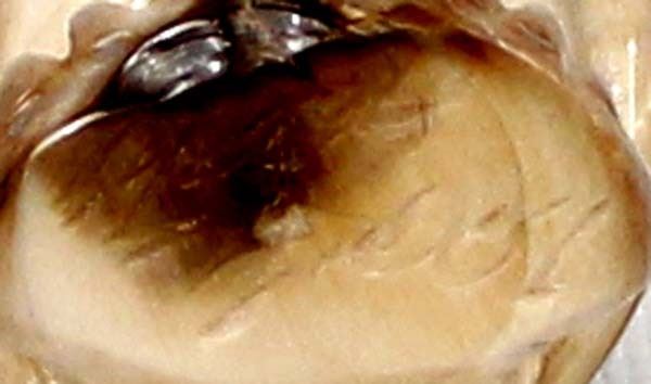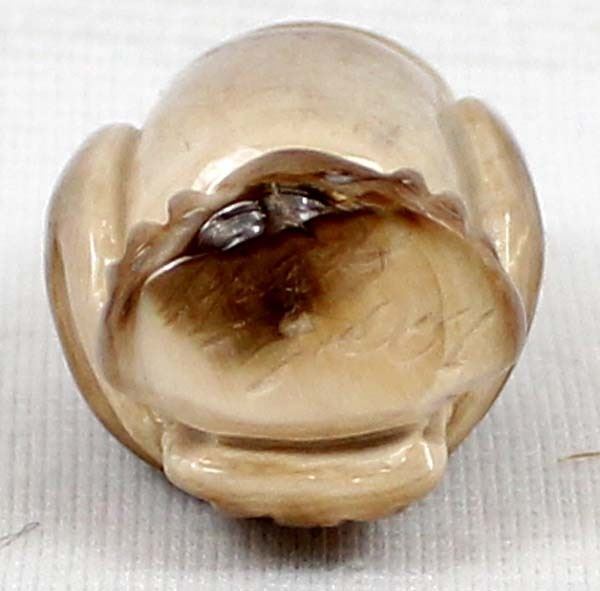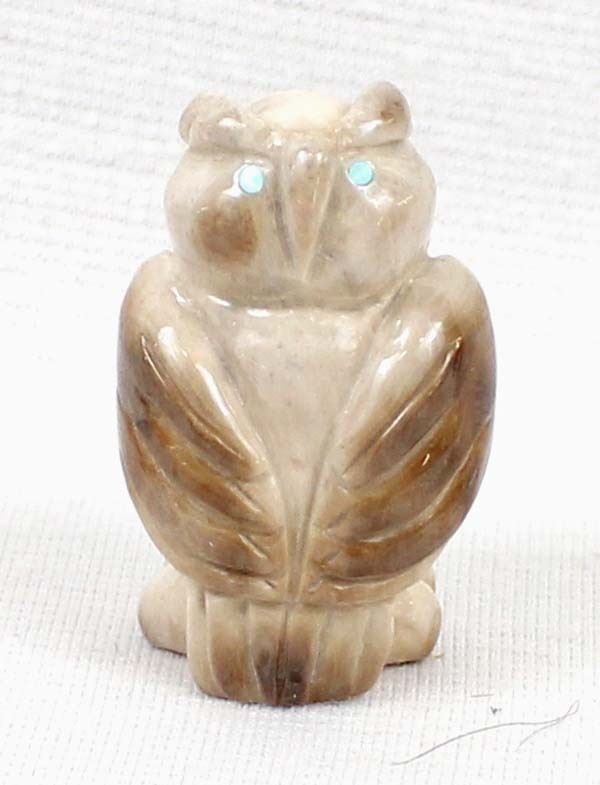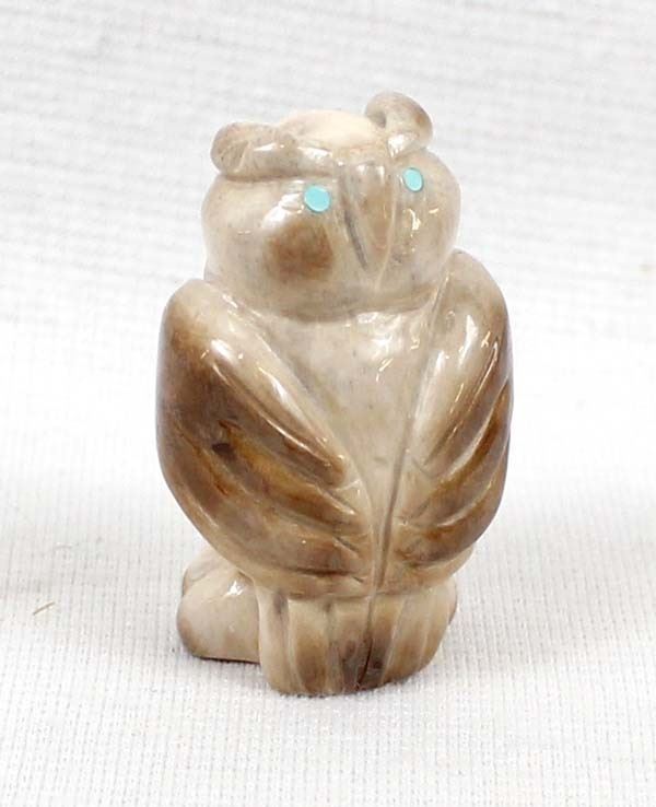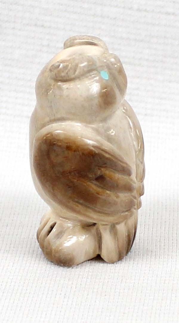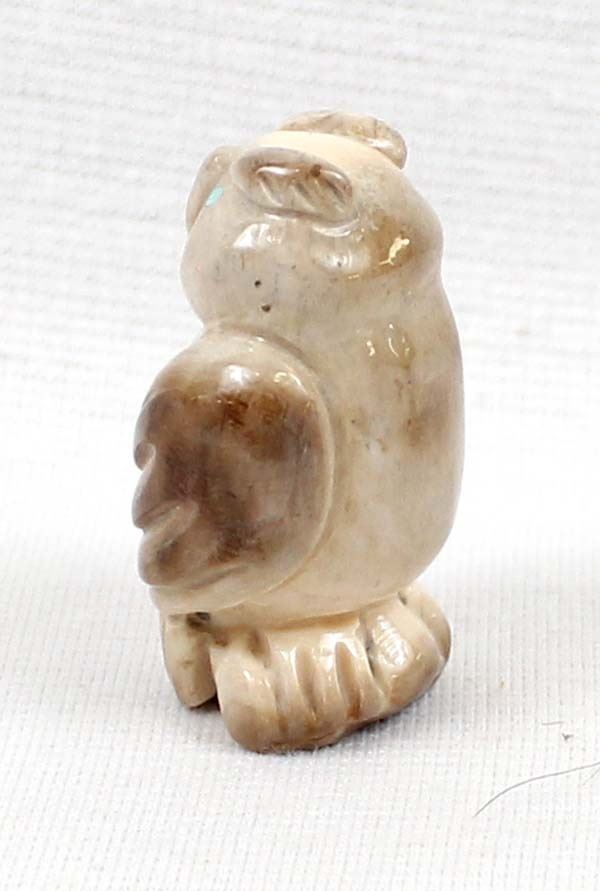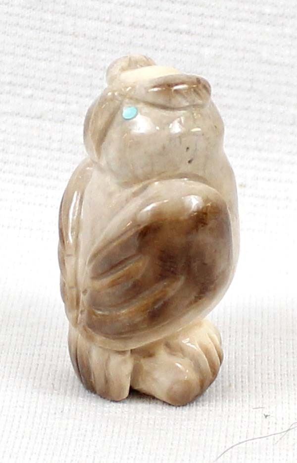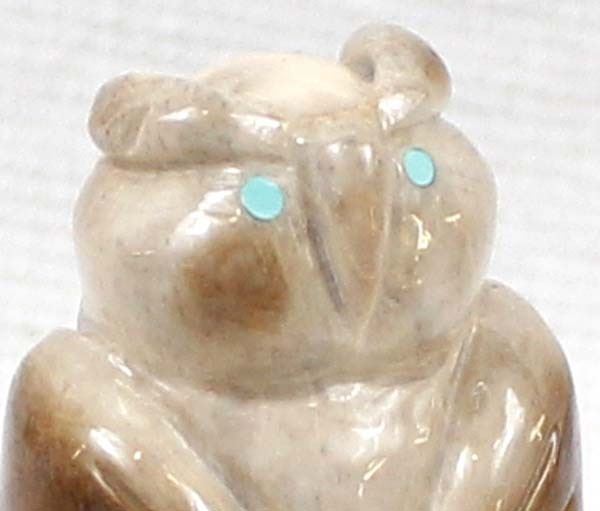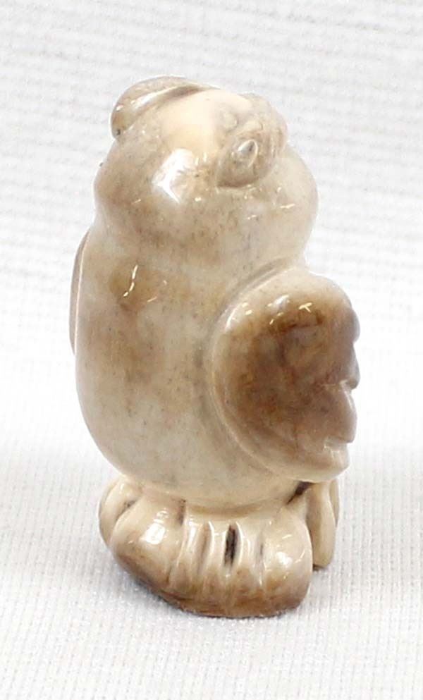 2008 Native American Zuni Fossilized Ivory Horned Owl Fetish by Brian Yatsattie, measures 1.5'' x .75'' and is signed on the bottom, turquoise eyes
