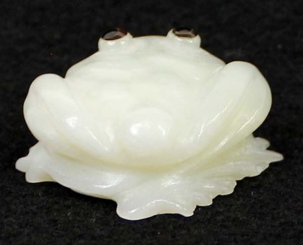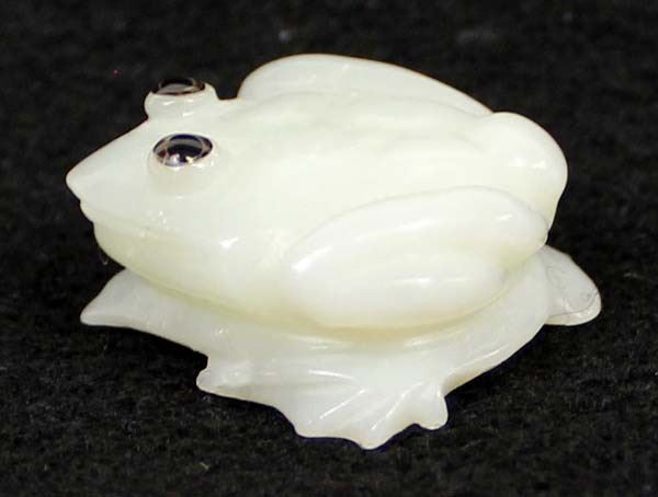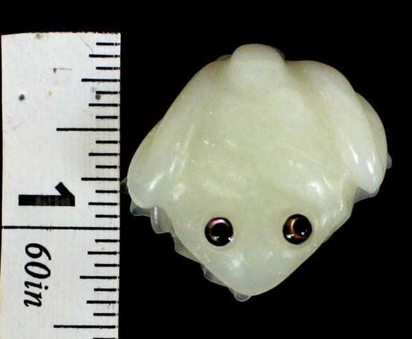 Native American Zuni Frog Fetish by Ricky Laahty, measures .75'' x 1.25'', there is a carved rooster on the bottom of this frog fetish, the stone does appear to fluoresce when under a black light