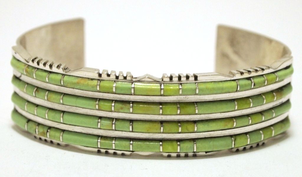 Zuni Gaspeite Overlay Sterling Silver Cuff Bracelet - Sheldon Lalio