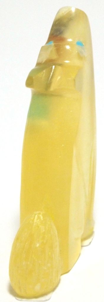 Measures 2-1/8" tall by 3/8" wide by 1-3/4" deep. Coyote has Turquoise eyes and Lapis Lazuli, Coral, Black Jet & Turquoise mouth/heart line.