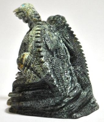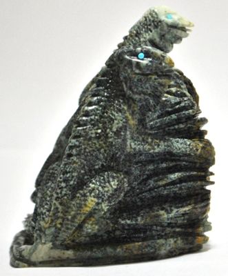 Zuni Green Marble Double Lizard on Rock Fetish - Calvin Weeka