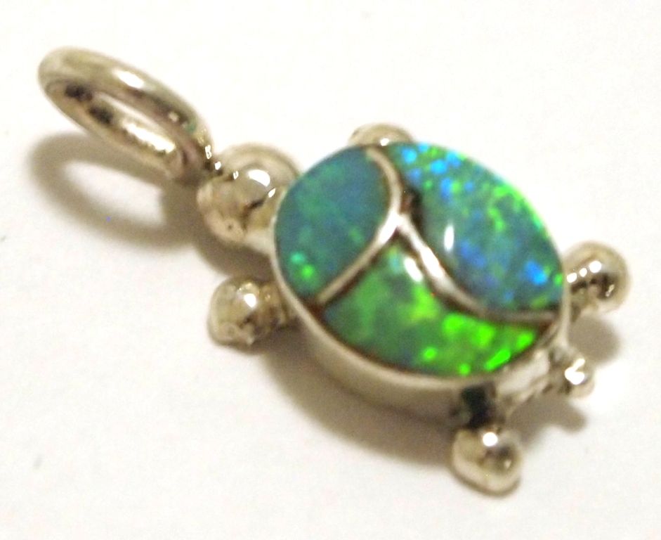 Zuni Green Opal Inlay Sterling Silver Turtle Pendant - Vernon Waikaniwa