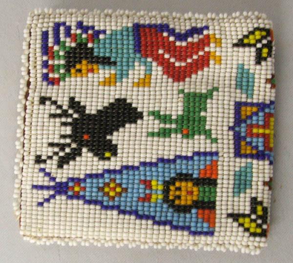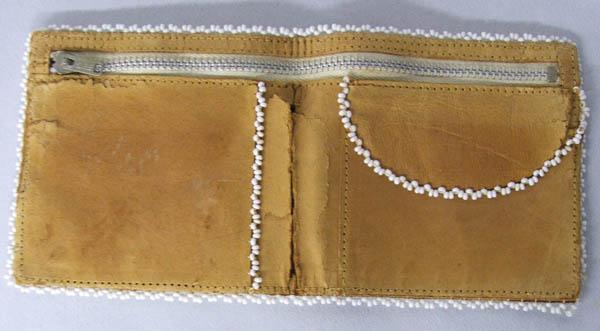 Zuni Hand Beaded Leather Wallet, measures approx. 7" x 3 1/2" open. SHI $15.