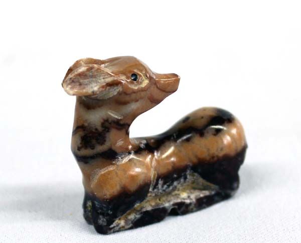 Zuni Hand Carved Dolomite Fawn Deer, measures 1.25'' x 1.25'', jet eyes