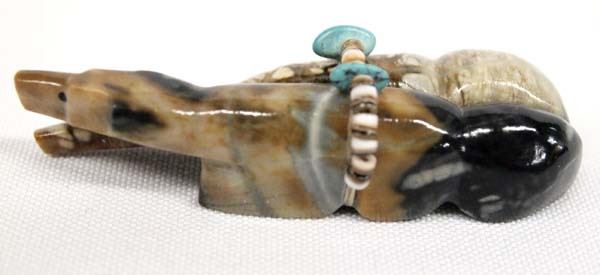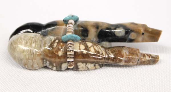 Native American Zuni Hand Carved Picasso Marble Double Bear Fetish by Ed Lementino, measures 2.5'' x 1'', shell heishi and turquoise nugget spirit pack, comes with COA