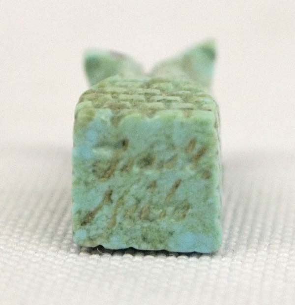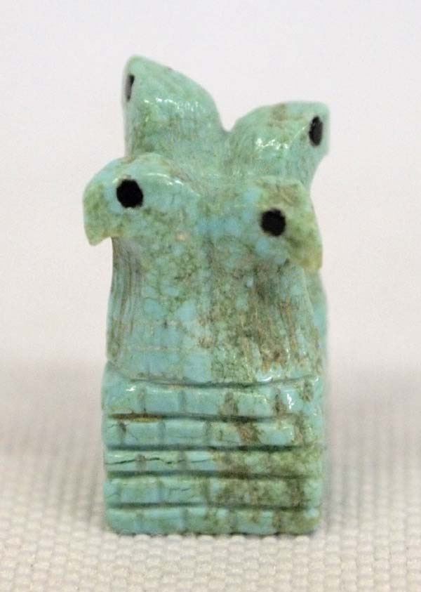 Native American Miniature Zuni Hand Carved Turquoise Fetish by Frank Nieto, 4 headed eagle, signed by artist, measures .75''H x .25''W