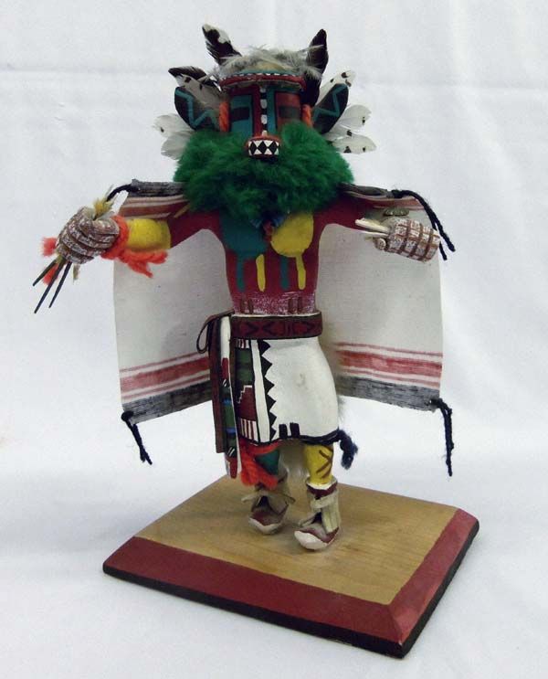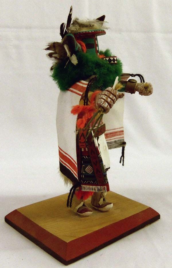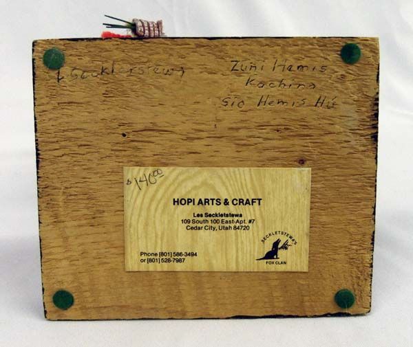 Zuni Hemis Kachina. The Hemis Kachina is the homecoming kachina or the indicator of the mature corn for the tribe.  11''H x 8'' W, this colorful kachina is a favorite for collectors.Base is signed.