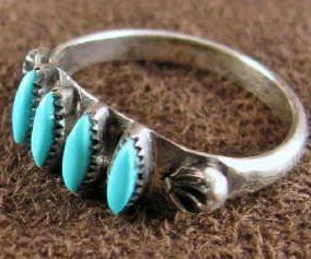 Sterling silver ring with 4 turquoise stones, ¼ in width, Size 5