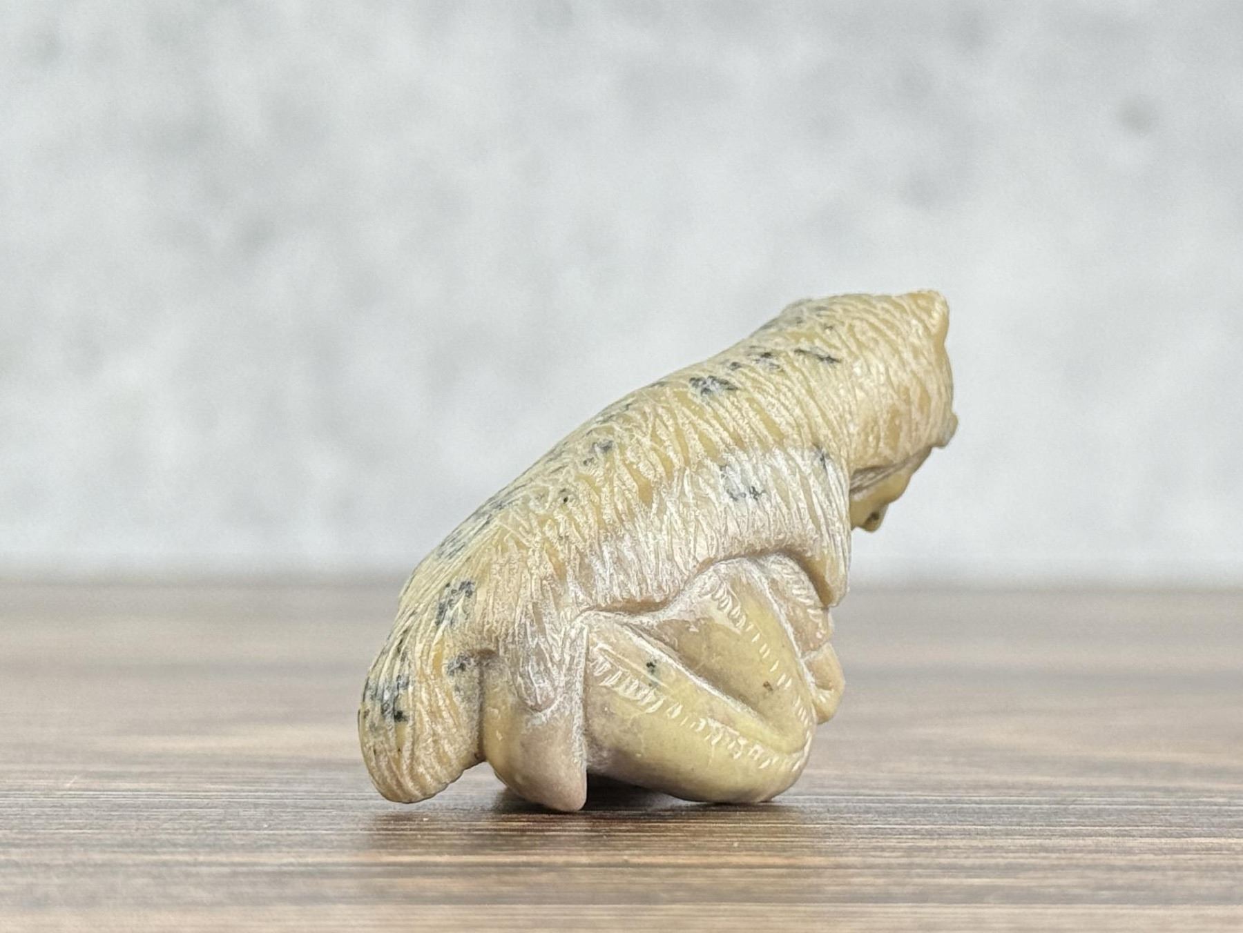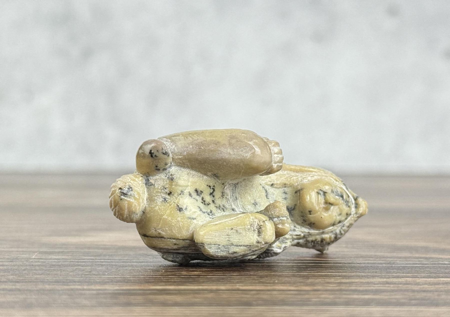 Anthropomorphic carving, 2" long by 1 3/8" by 1" tall.