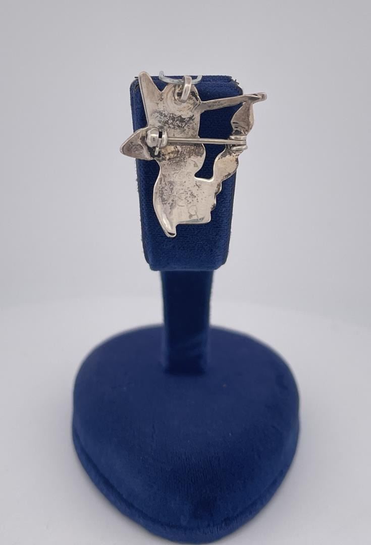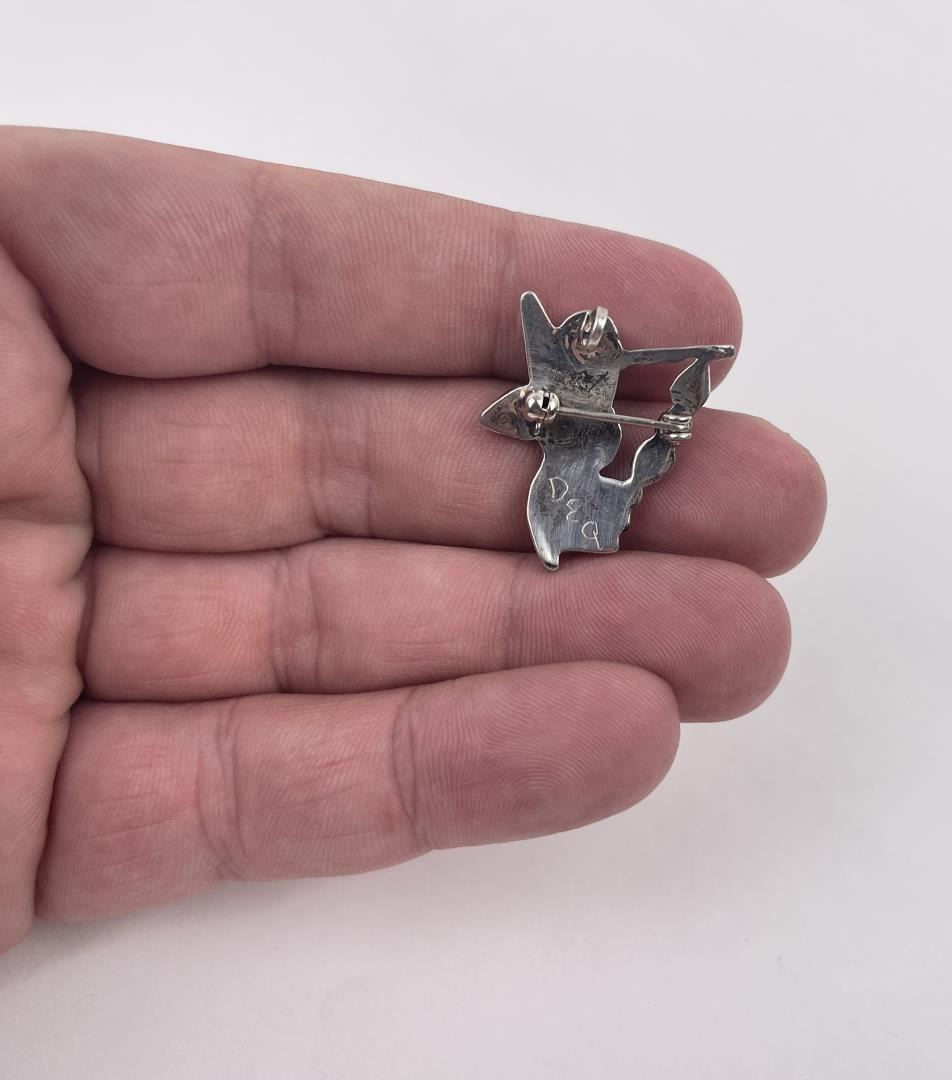 Can be used as a brooch or necklace pendant. 1" tall. Signed as shown.