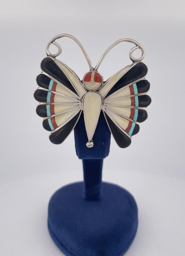 Can be used as a brooch or necklace pendant. 2" long, 2" tall.