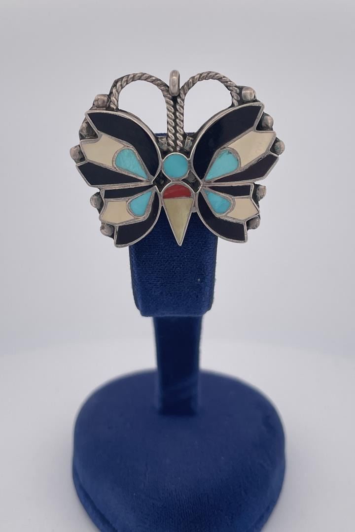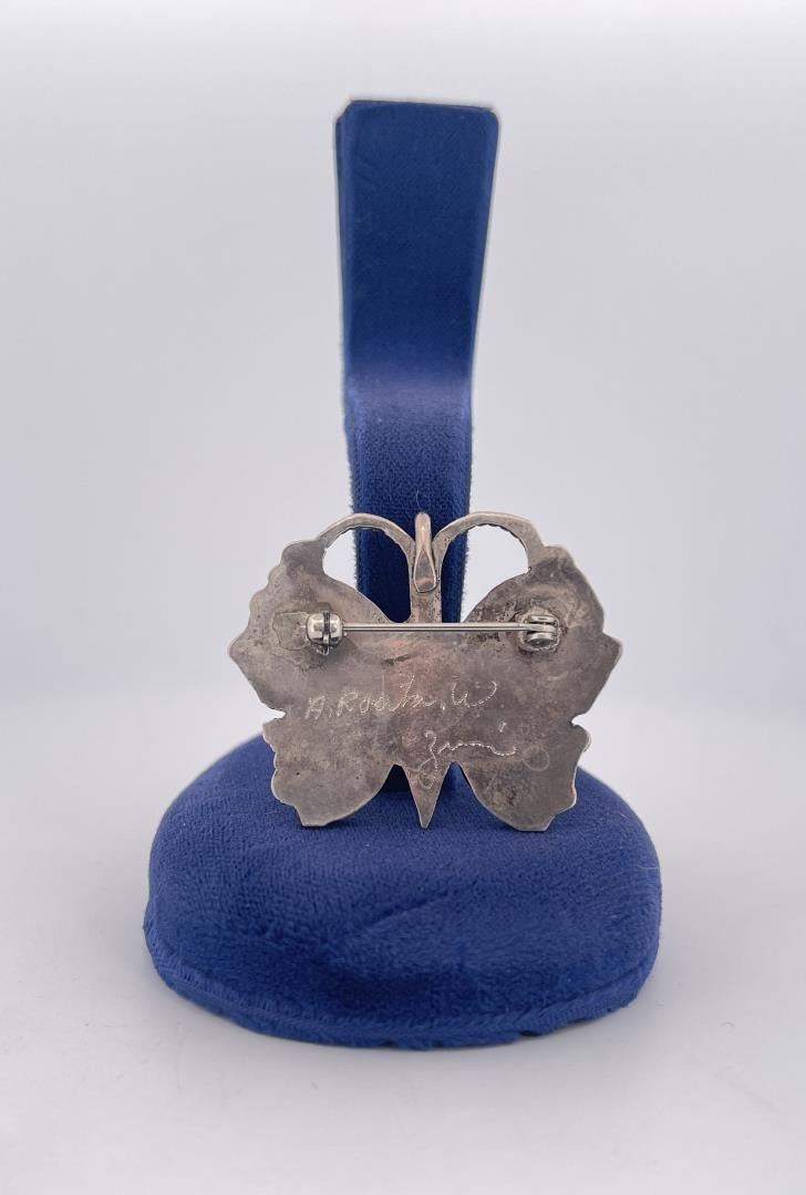 Can be used as a brooch or necklace pendant. 1 1/2" long, 1 1/4" tall.