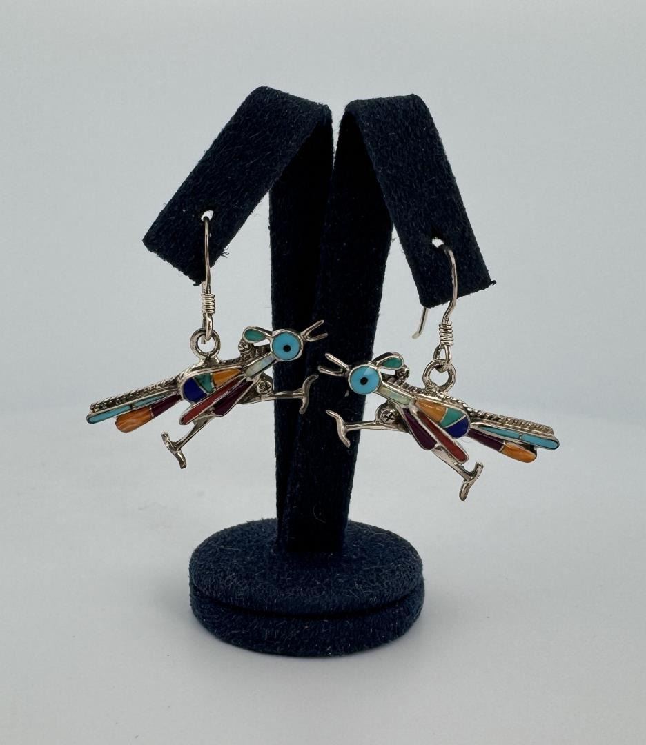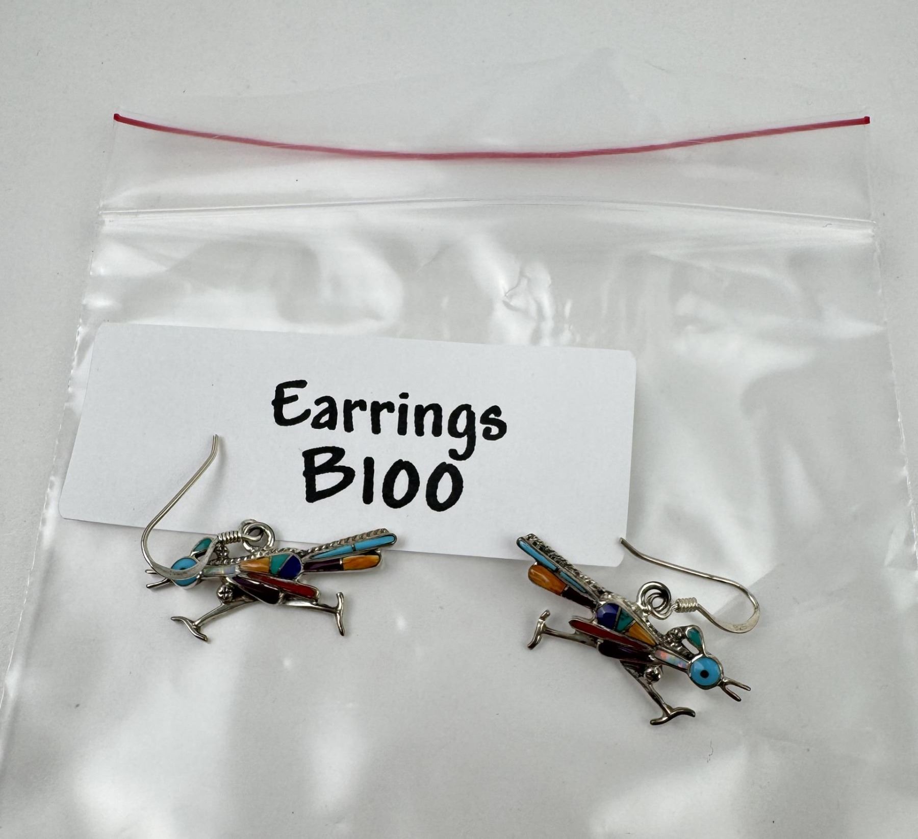 Turquoise, Opal, Lapis, Coral, Spiny Oyster Inlay. 1/2" long, 1" wide.
