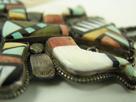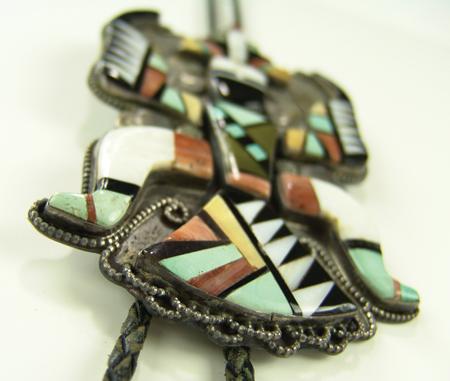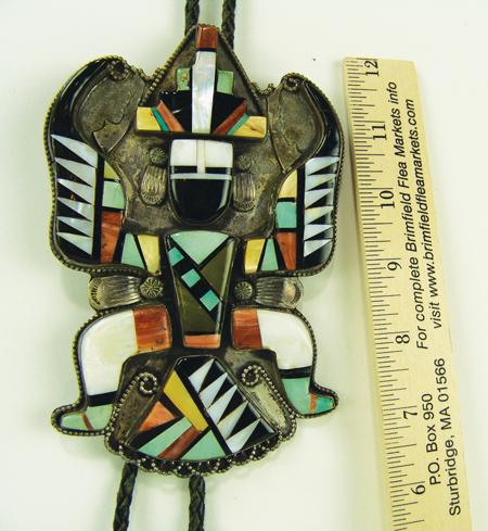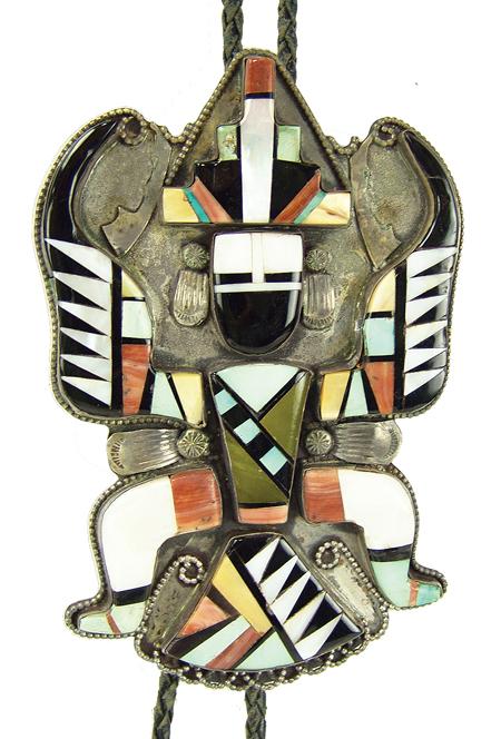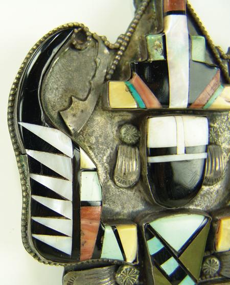 Circa 1960s, Large and beautiful vintage channel inlay slide in  the form of a knifewing dancer.  Very good  condition, good patina, unsigned. 6" x 3-1/2"