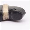 Native American Zuni Jet Bear Fetish by Dion Terrazas, measures 2''L x 1''H x .25''W and has artist's initials on the bottom, carved turquoise arrowhead spirit bundle