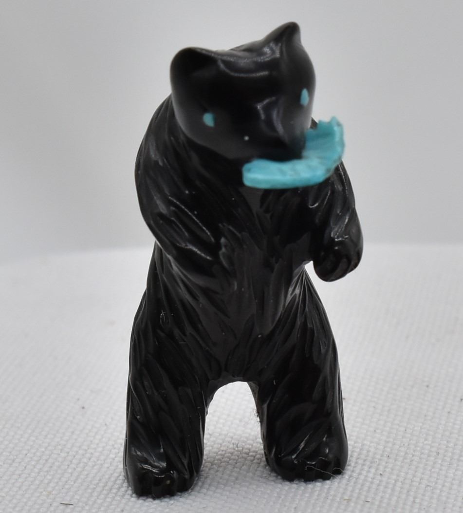 Zuni Jet Standing Bear Fetish, Andres Quandelacy