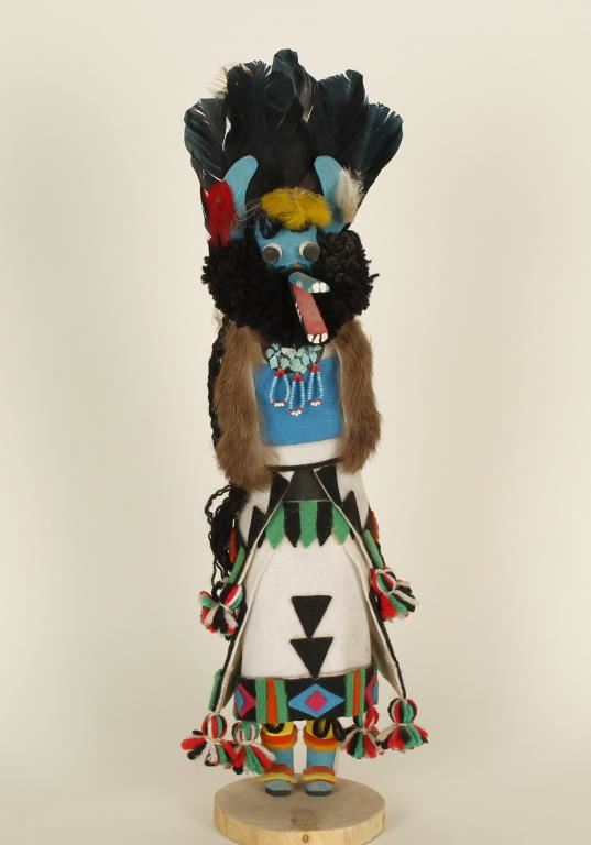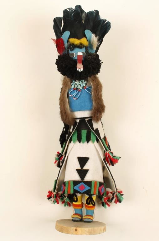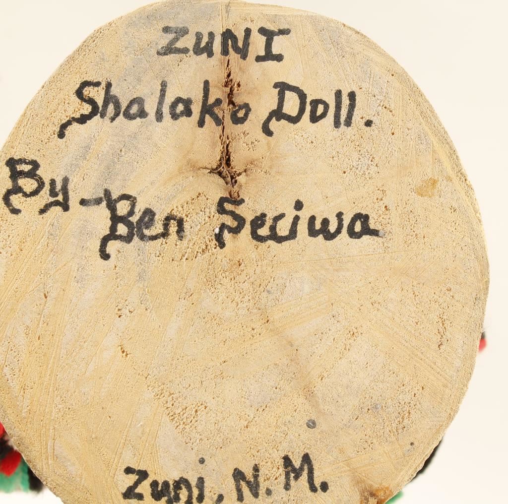Ben Seciwa artist. Schalko doll. Felt clothing on wood base. Measures 17" tall.