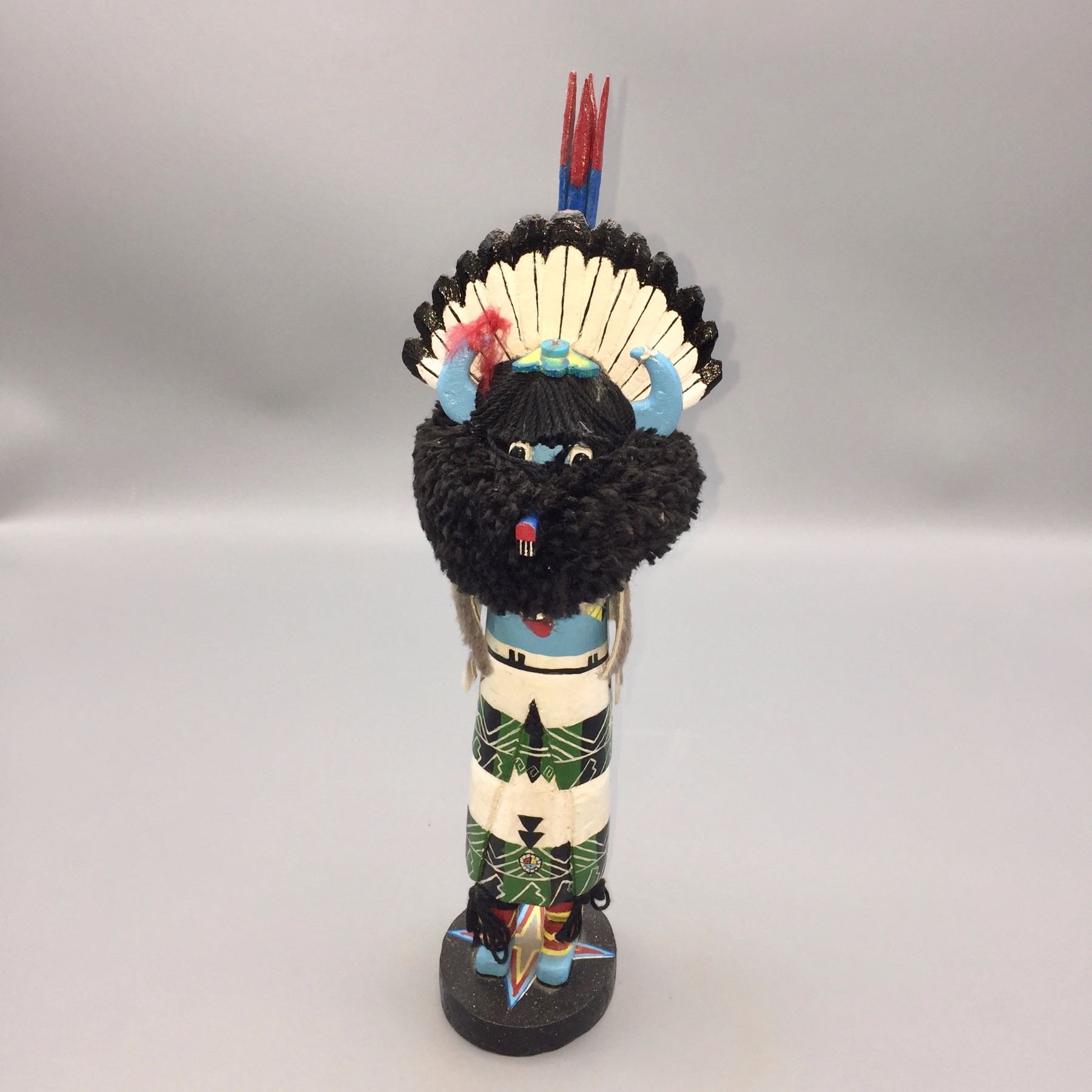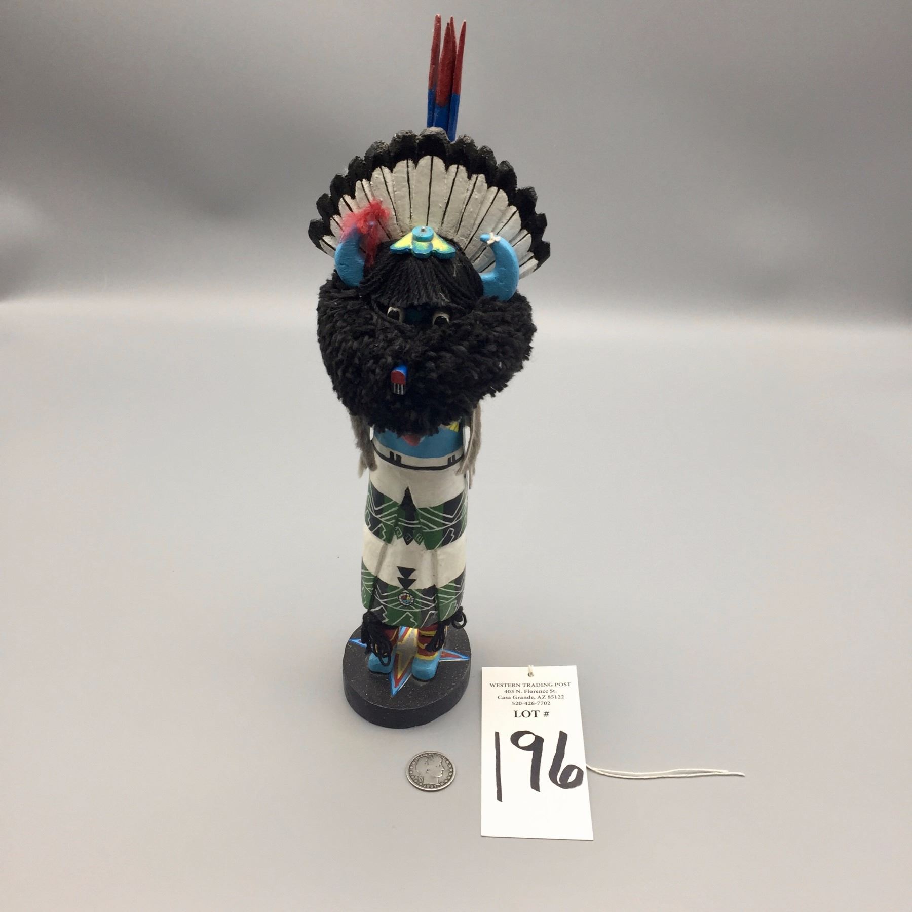 Maker: Danny Lonjose (Zuni artist). Approx. Age: Circa 2012. Size: Measures 13 1/4” h x 4” w x 3” l. Additional Info: Zuni Shalako kachina. Condition: Good, New, old stock (NOS) from dealer who is retiring. Please look closely at the pictures - they are an important part of our description. Shipping: There will be a $8 handling / packaging fee for shipping this lot. The actual cost of postage will be added on top of that.