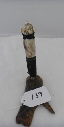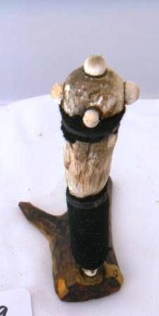 Zuni Antler Kachina with missing nose. Appears to have had other Kachinas. Circa 1920. Has horn eyes damaged. Shipping $18.00