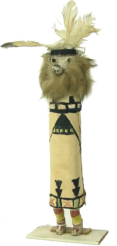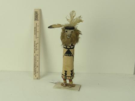 Circa Early/Mid 1900s, Rare smaller "Sio Shalako" doll, hand carved and painted from cottonwood root, wrapped in painted cloth. Very good condition, shows use. 12" x 3"