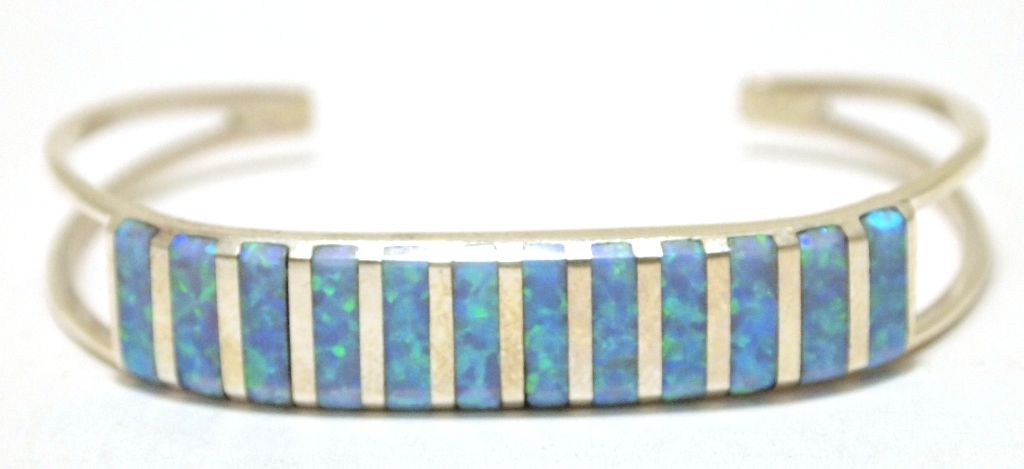 Zuni Light Blue Opal Inlay Sterling Silver Cuff Bracelet - Cheryl Siutza