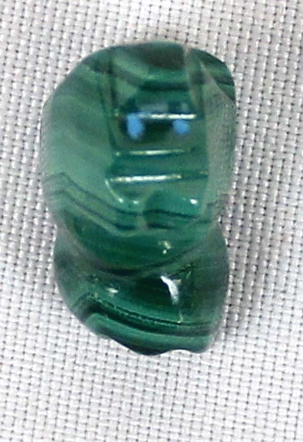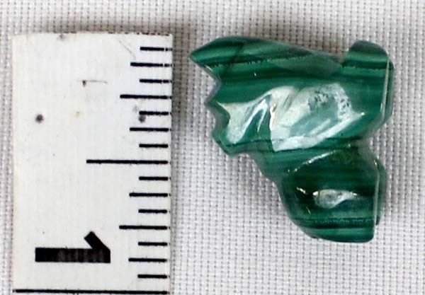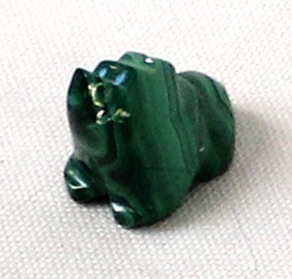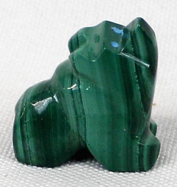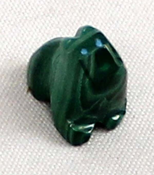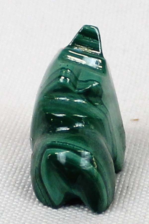 Native American Zuni Malachite Bear Fetish by Hubert Quam, measures .75''L x .75''H x .5''W, turquoise eyes