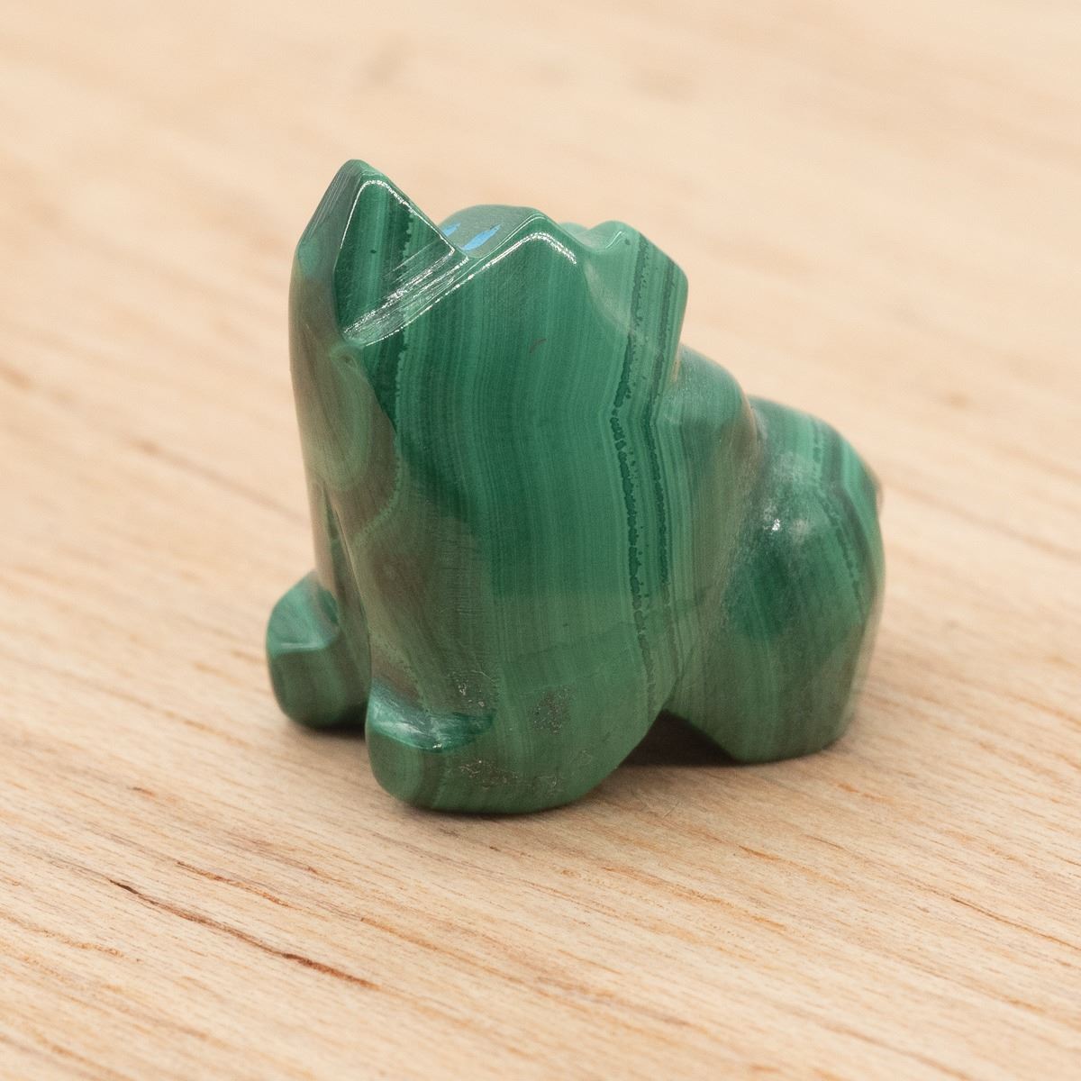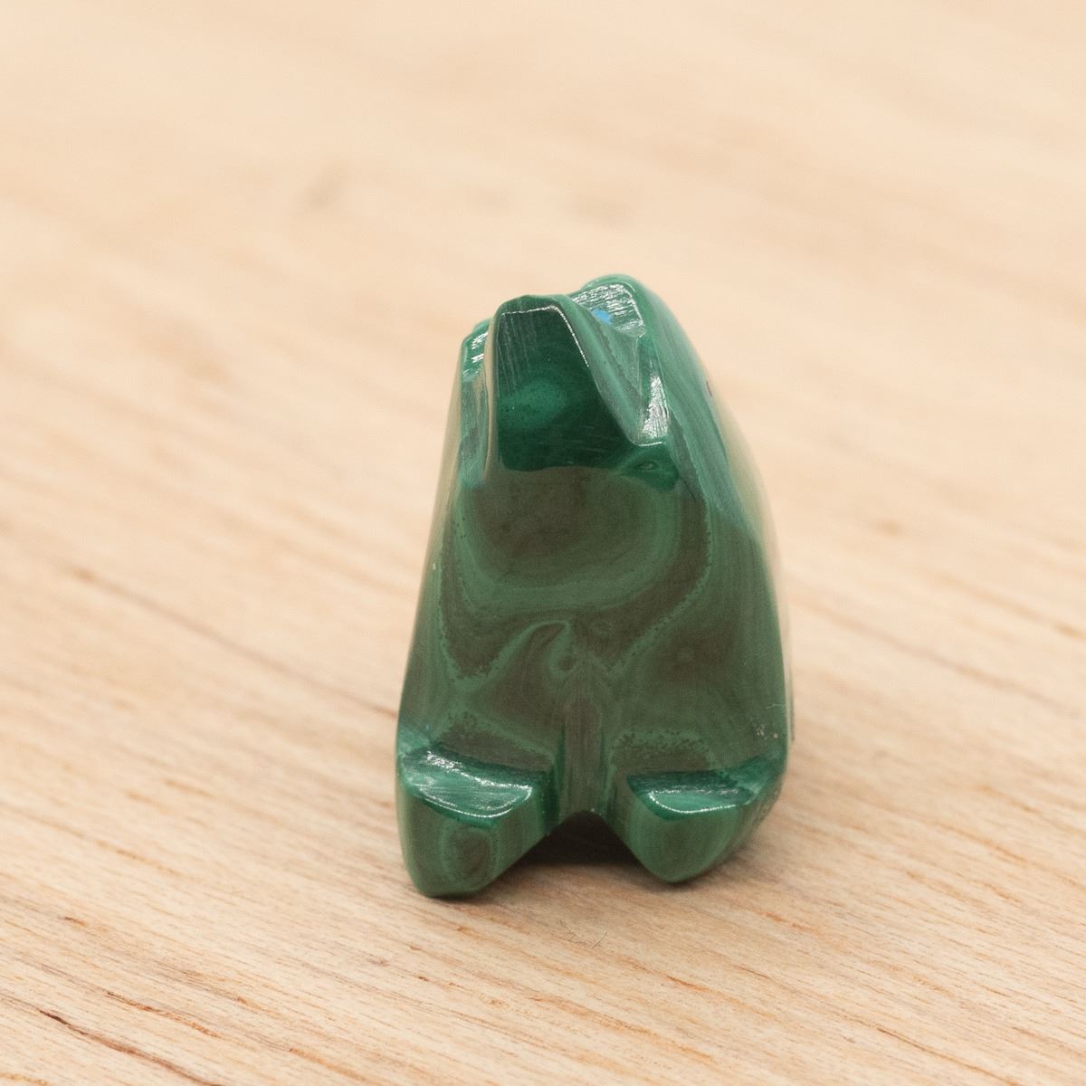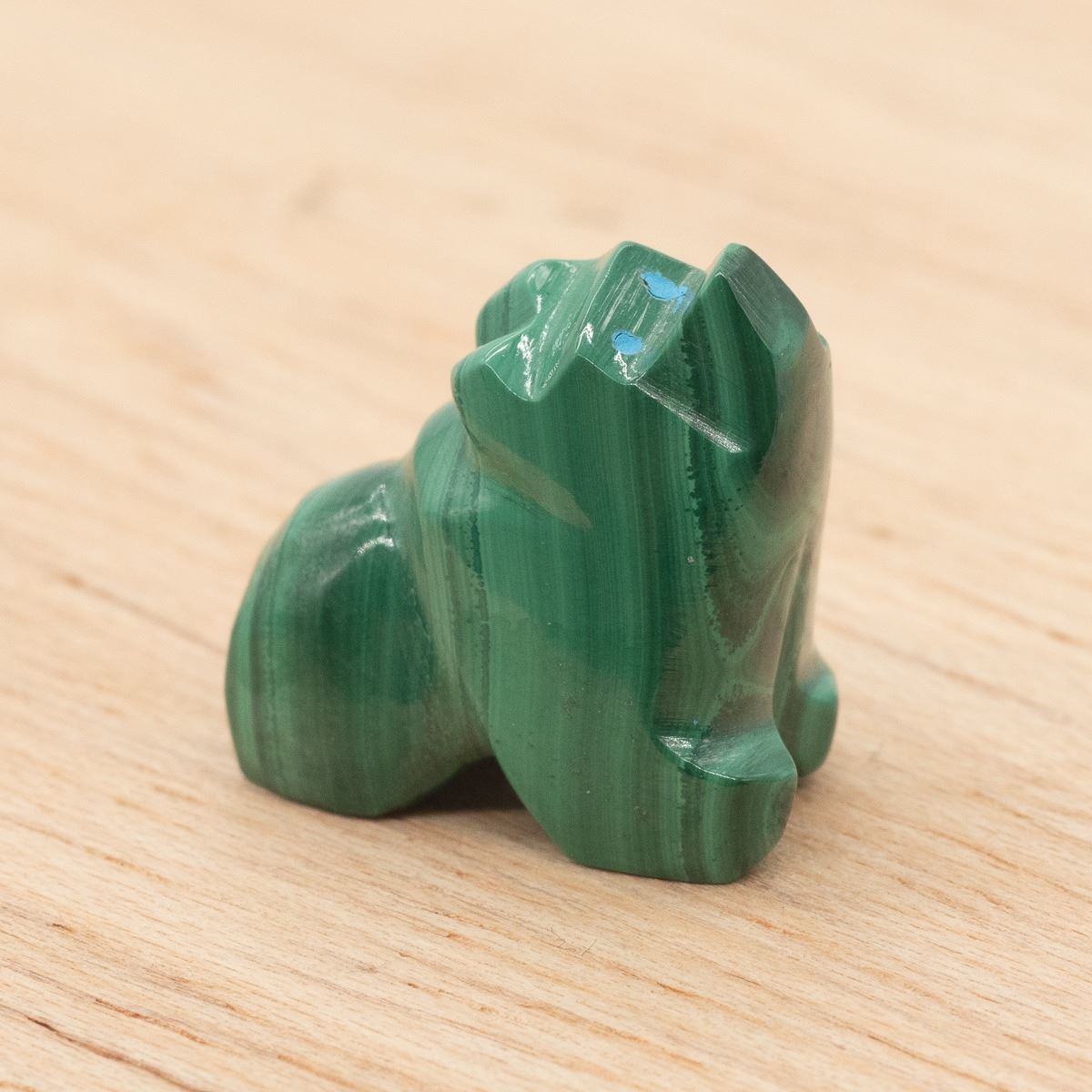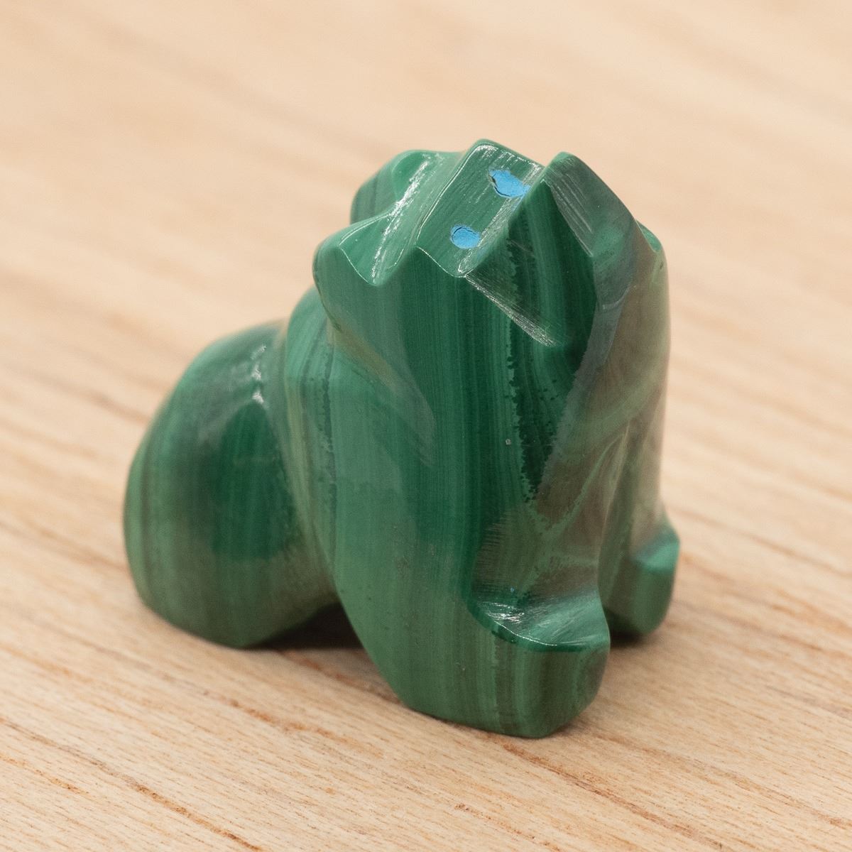 Native American Zuni Malachite Bear Fetish by Hubert Quam, measures .75''L x .75''H x .5''W, turquoise eyes