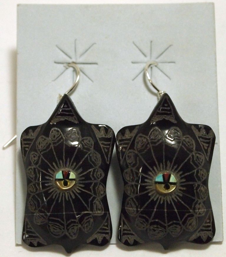 Zuni Marble Turtle Sterling Silver French Hook Earrings - Dilbert Gasper