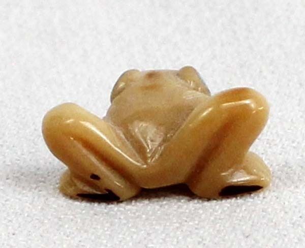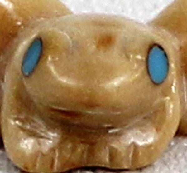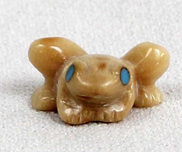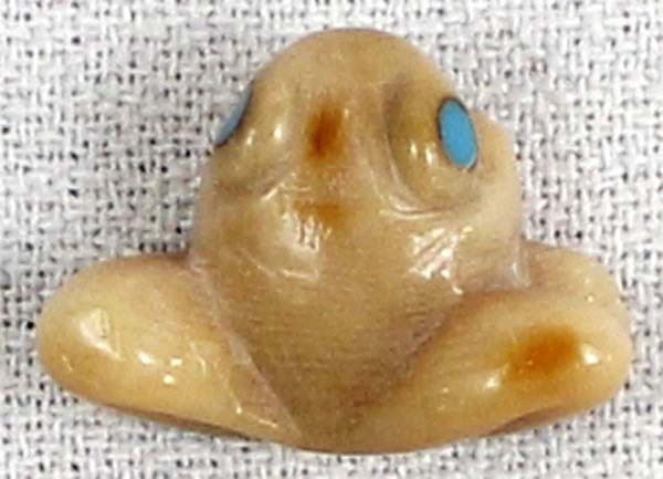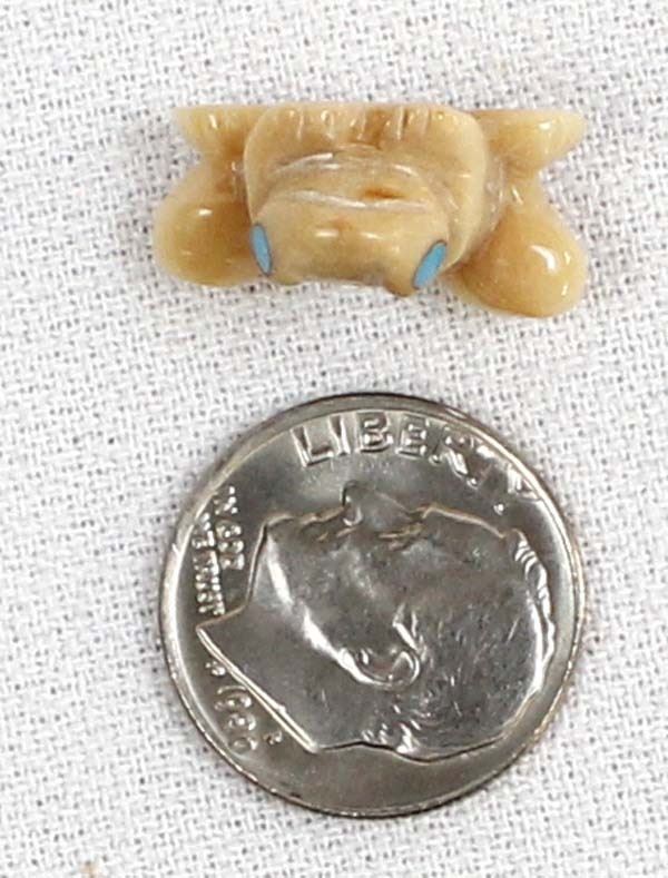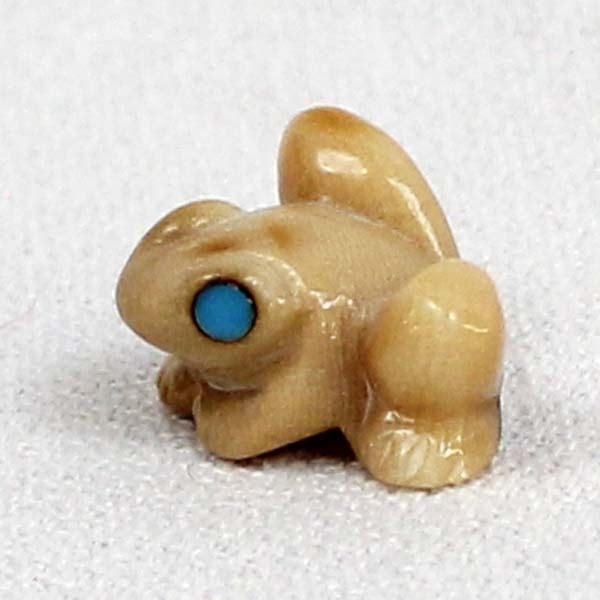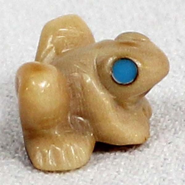 Native American Zuni Miniature Frog Fetish by Brian Yatsattie, measures .5'' x .5'' x .25'' and has artist's initials on the bottom, turquoise eyes