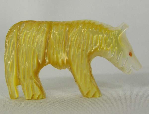 Zuni Mother Of Pearl Bear Fetish, measures approx. 1 1/2'' x 1''. SHI $15.