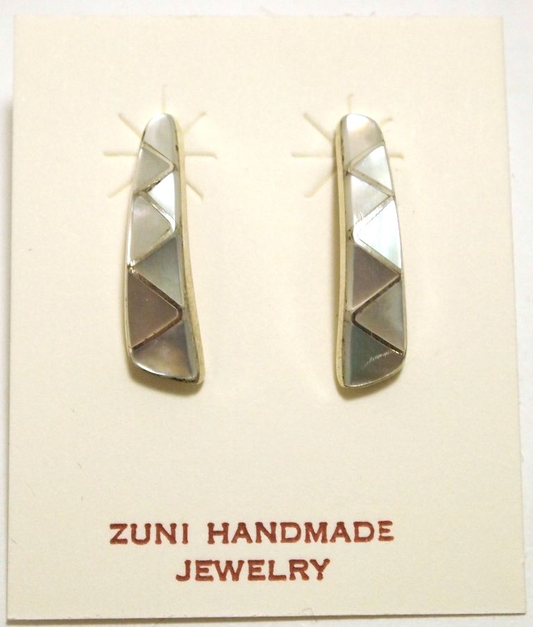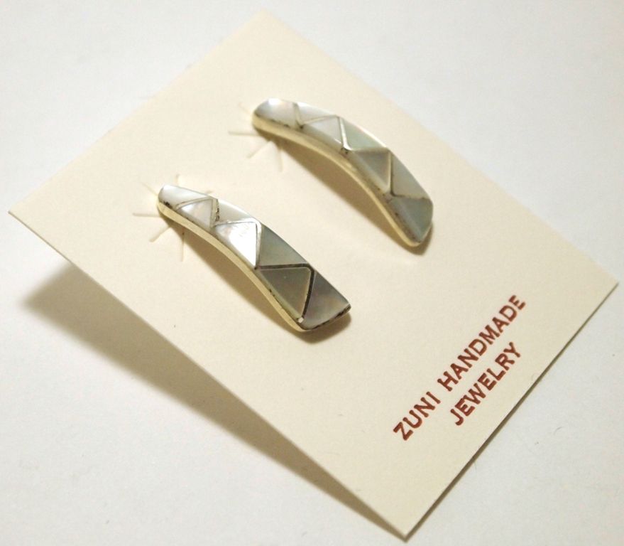 Zuni Mother of Pearl Inlay Sterling Silver Post Earrings - Rufina Halusewe