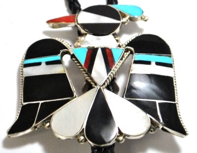 Zuni Mother of Pearl Inlay Thunderbird Bolo - Rosie Tekala
