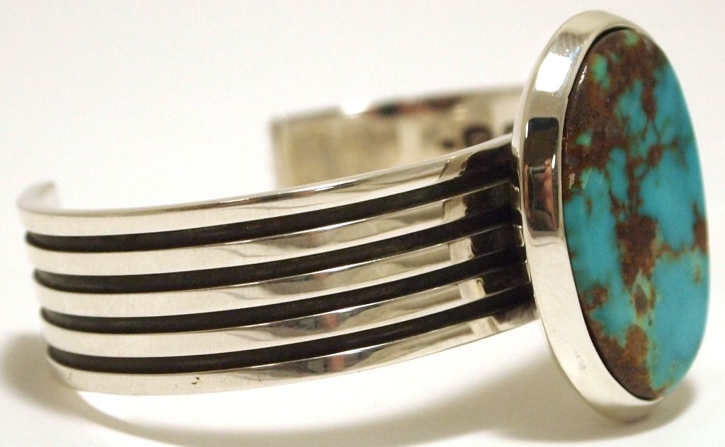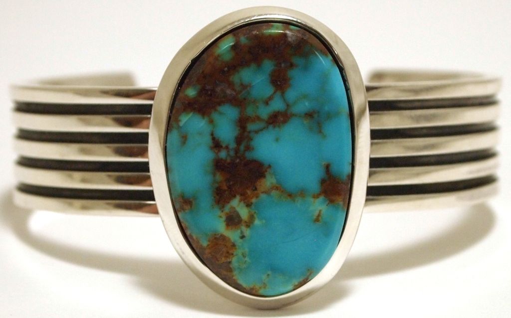Zuni Mountain Turquoise Sterling Silver Cuff Bracelet - Ric Laselute
