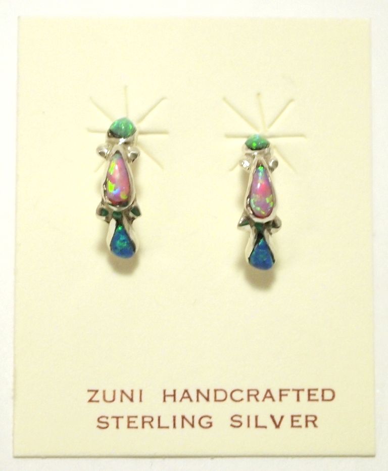 Zuni Multi-Opal Sterling Silver Small Half-Ring Post Earrings - Bryce Vacit