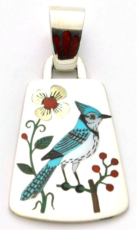 Zuni Multi-Stone Bird Design Sterling Silver Pendant - Rudell & Nancy Laconsello