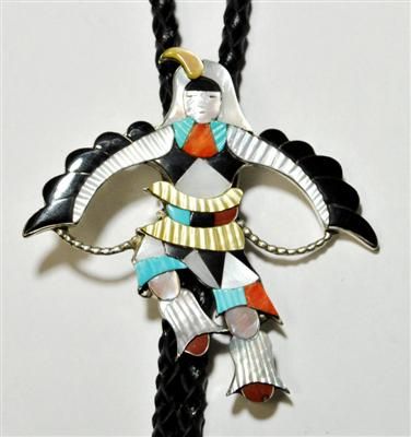 Zuni Multi-Stone Bird Dress Sterling Silver Bolo Tie