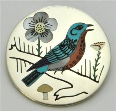 Zuni Multi-Stone Bird Sterling Silver Pendant & Pin - Rudell & Nancy Laconsello
