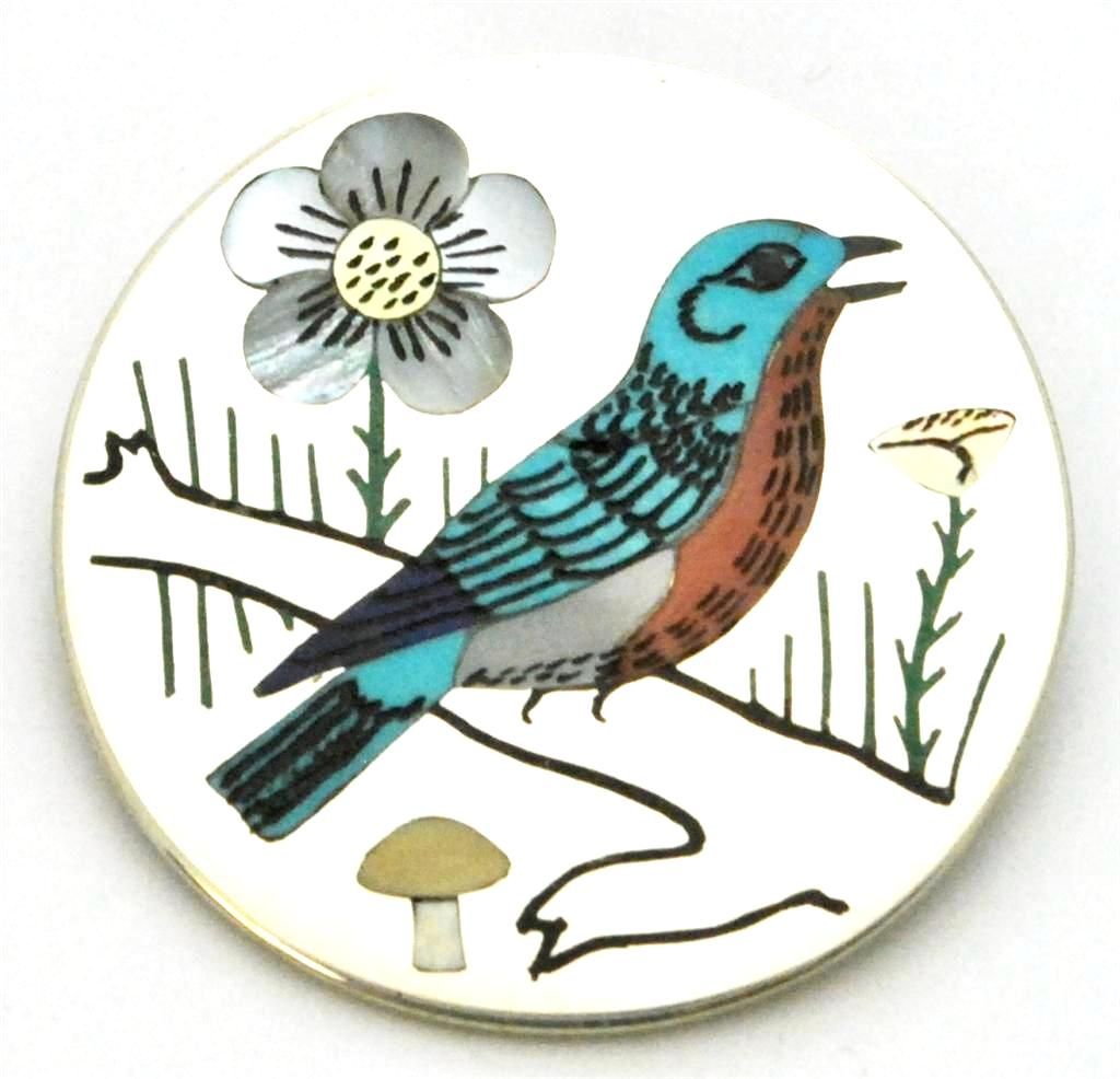 Zuni Multi-Stone Bird Sterling Silver Pendant & Pin - Rudell & Nancy Laconsello