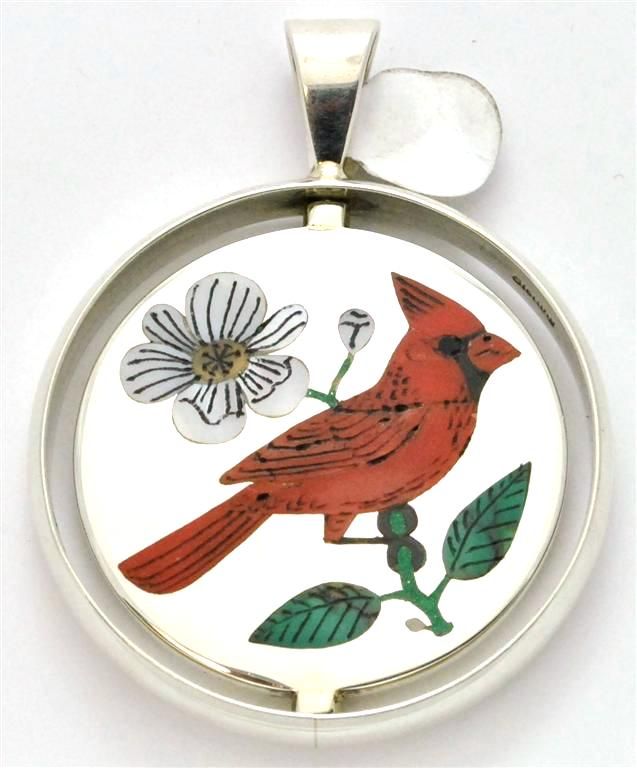 Zuni Multi-Stone Bird Sterling Silver Spinner Pendant - Rudell & Nancy Laconsello