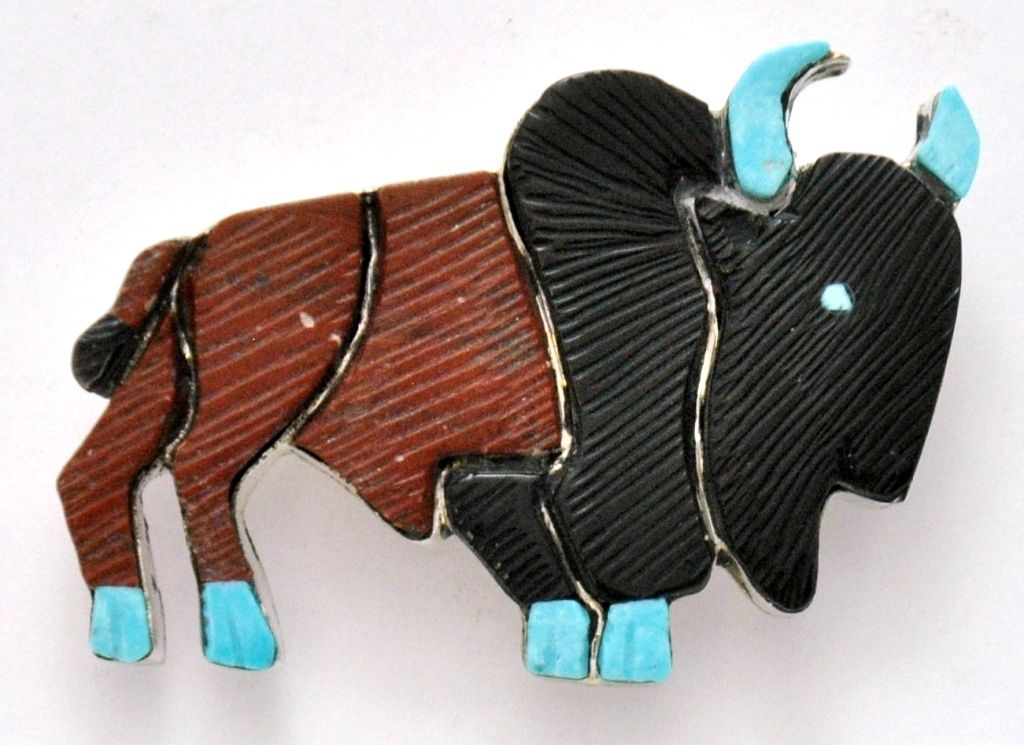 Zuni Multi-Stone Bison Pendant & Pin - Stephan Lonjose