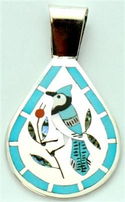 Zuni Multi-Stone Blue Bird Pendant - Dennis & Nancy Edaakie